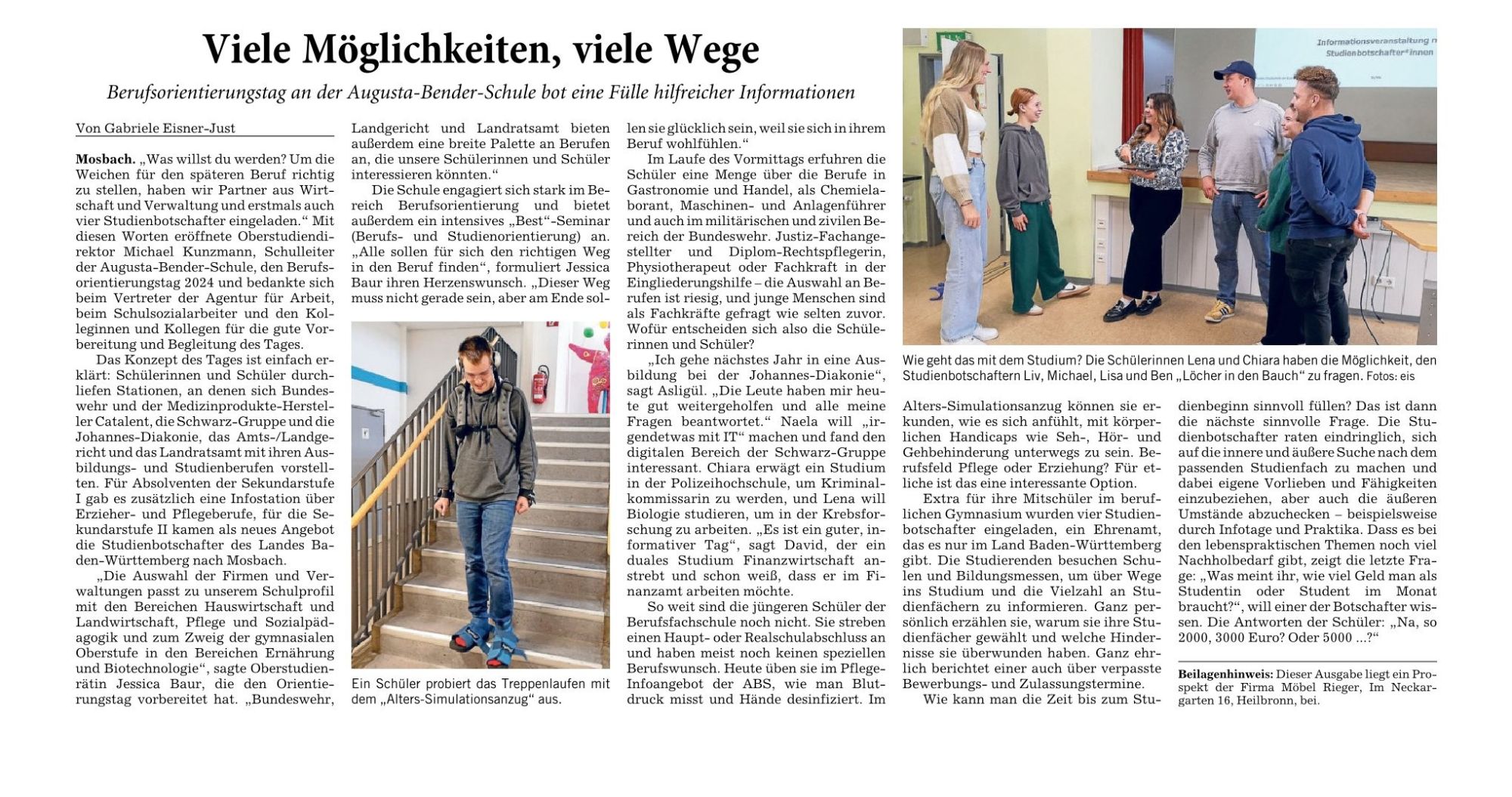 Am Freitag, 18.10.2024 fand an der Augusta-Bender-Schule ein besonderer Tag zur Berufs- und Studienorientierung statt.