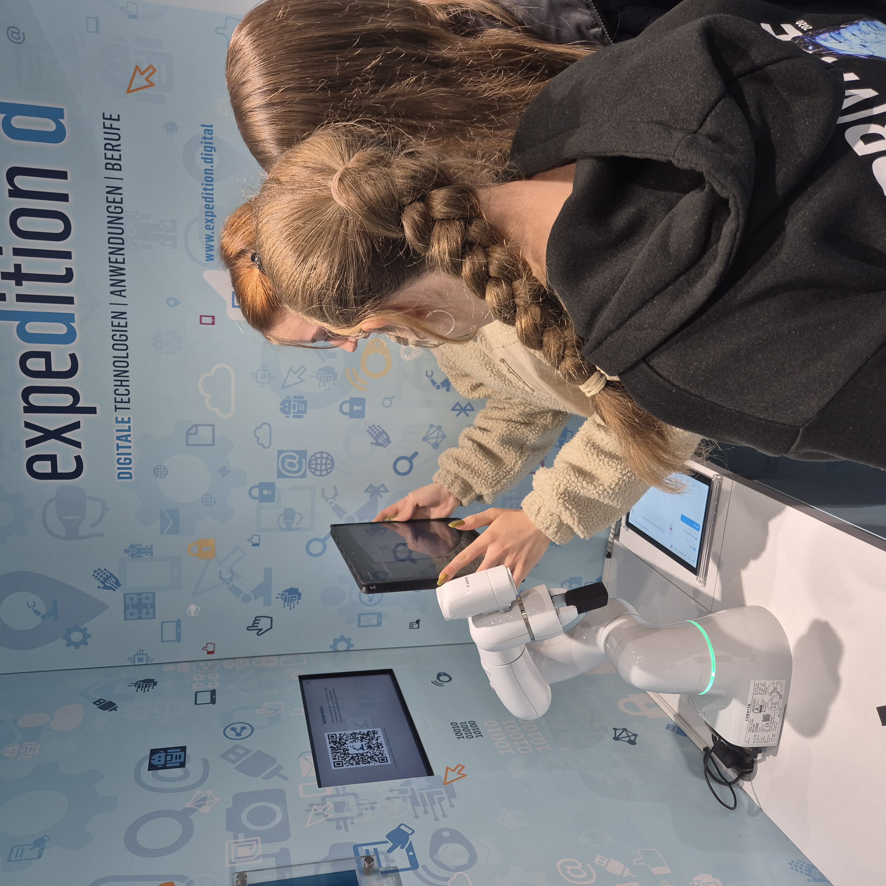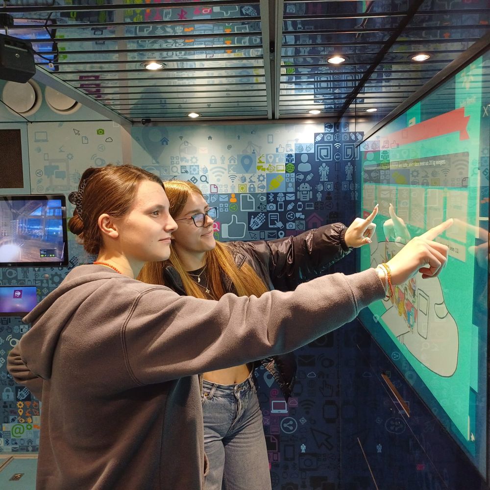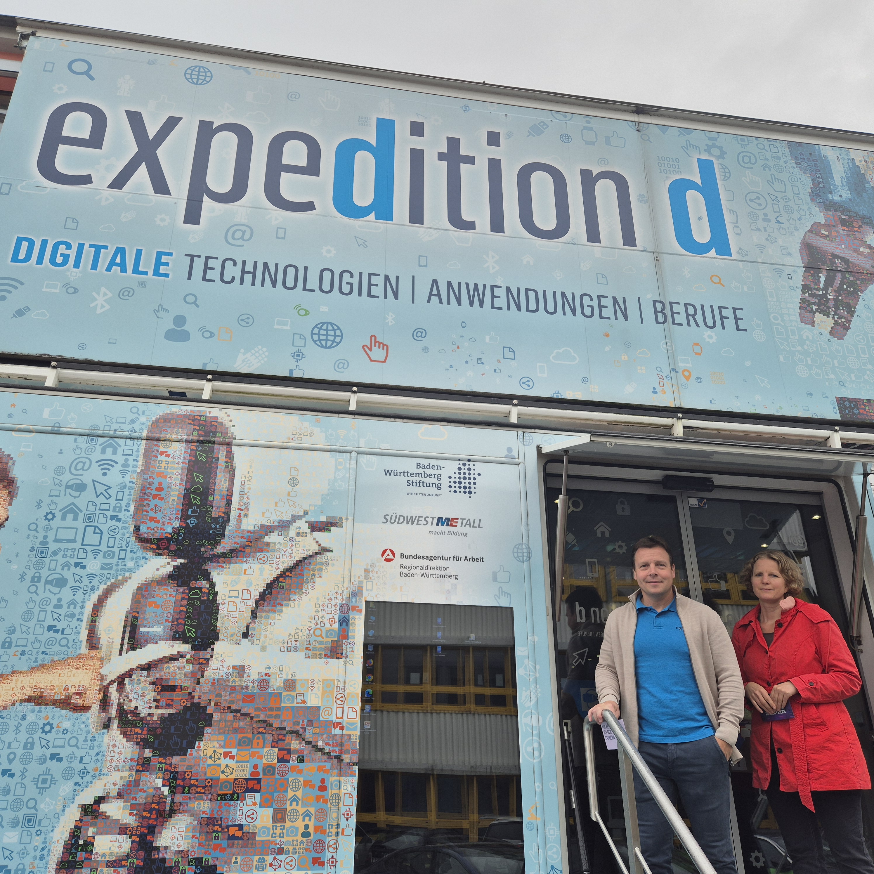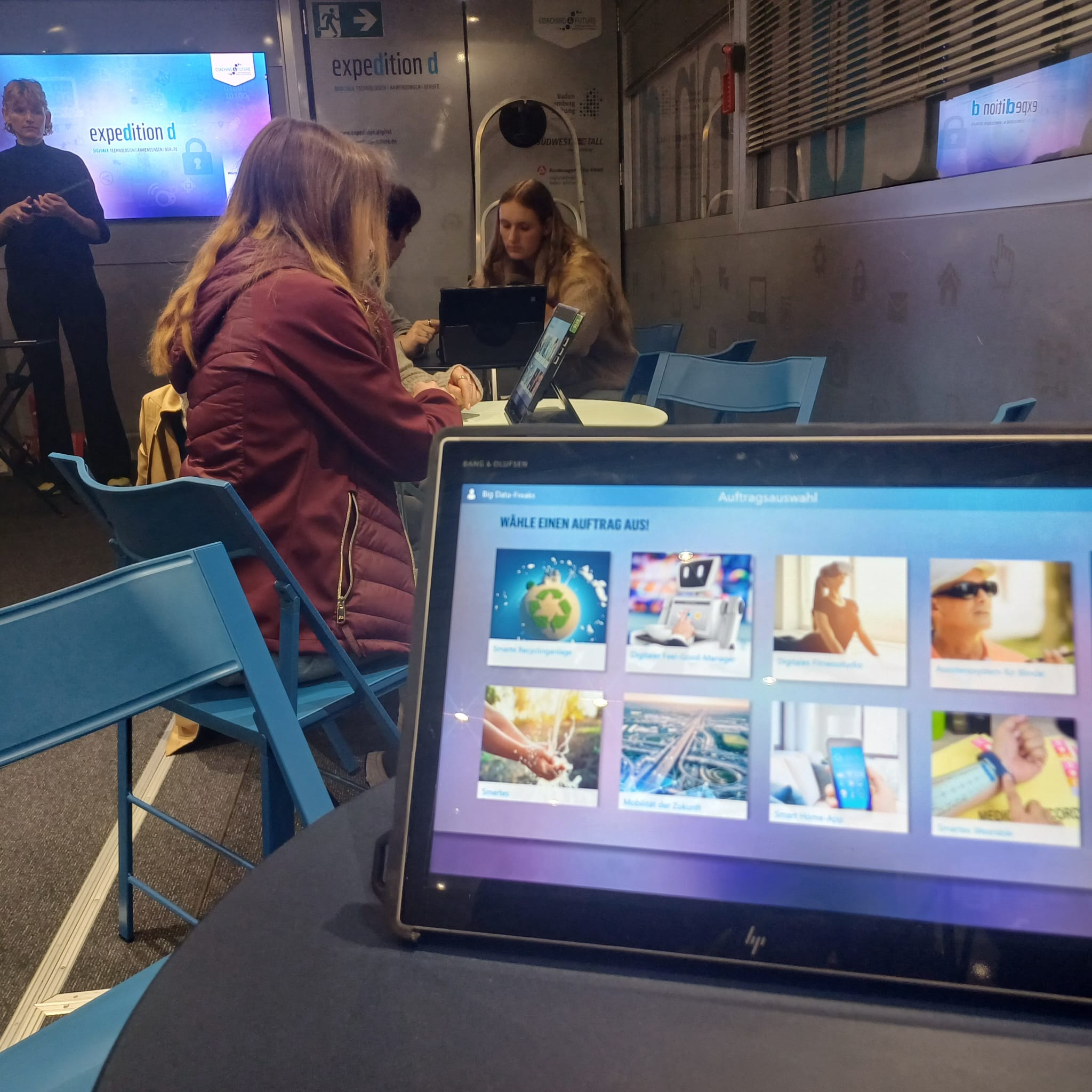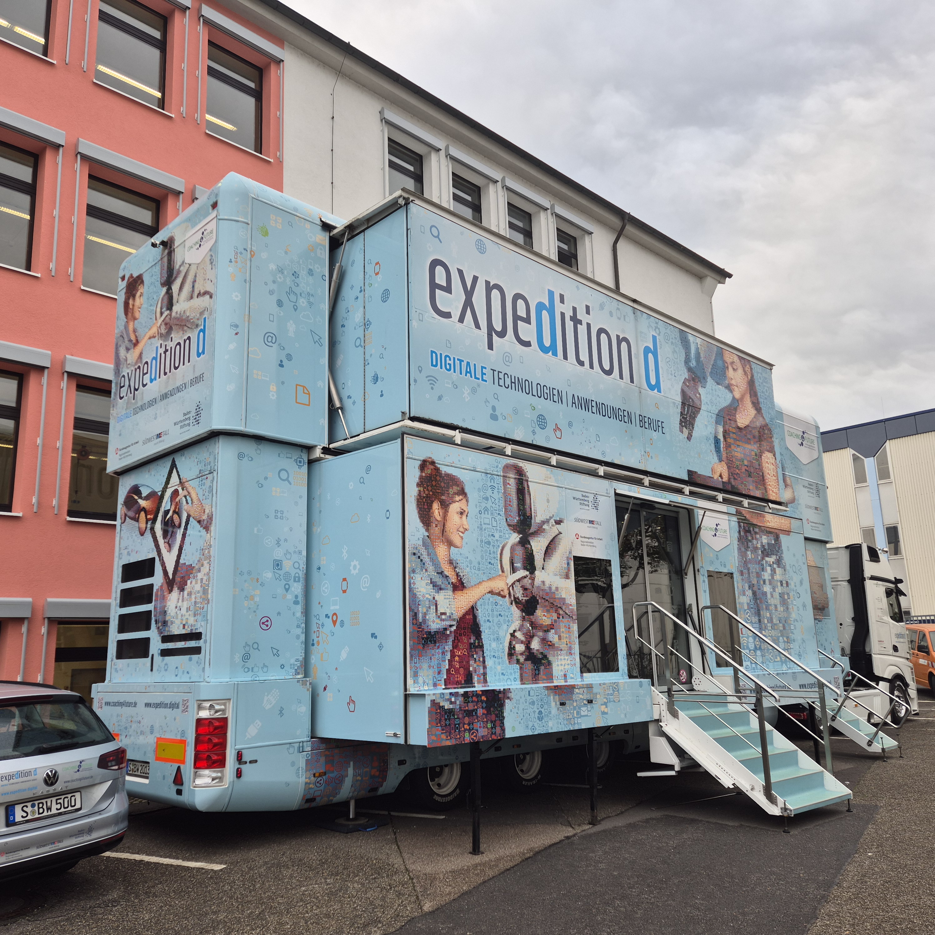 Unser Alltag wird immer digitaler – das Berufsleben auch. Umso wichtiger ist es, digitale Anwendungen nicht nur bedienen zu können, sondern sie auch zu verstehen. Dabei hilft der Erlebnis-Lern-Truck der Bildungsinitiative expedition d, der von 30.09. bis 02.10.2024 an der Augusta-Bender-Schule und der Gewerbeschule in Mosbach zu Gast war. Dort hatten Schülerinnen und Schüler des Biotechnologischen und Ernährungswissenschaftlichen Gymnasiums die Möglichkeit, in einer doppelstöckigen Ausstellung gemeinsam mit zwei Coaches digitale Schlüsseltechnologien kennenzulernen und selbst auszuprobieren.