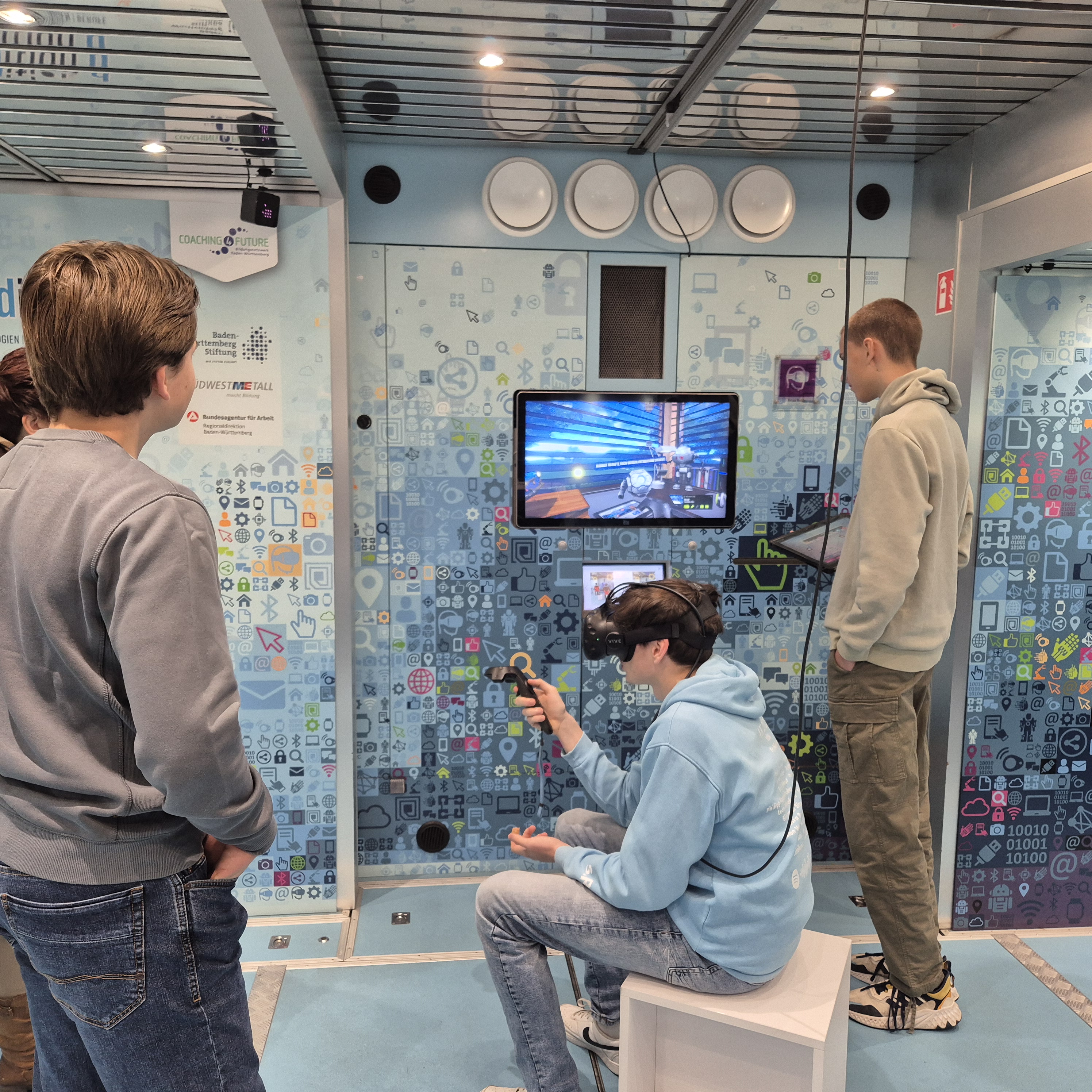 Der Truck ist ein Angebot des Bildungsprogramms COACHING4FUTURE, im Auftrag der Baden-Württemberg Stiftung, des Arbeitgeberverbands SÜDWESTMETALL und der Bundesagentur für Arbeit.
