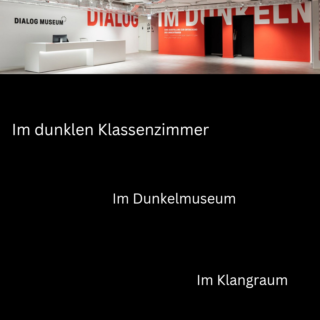 Die Schülerinnen der sozialpädagogischen Klassen 2BKSP2 und 3BKSP(i)T3 besuchten die lichtlose „Dialog im Dunkeln” Ausstellung. Die Tour beinhaltete eine Führung durch den lichtlosen Ausstellungsparcours mit vier unterschiedlichen Themenräumen und einem abschließenden Besuch in der DunkelBar. Hier hatten die Schülerinnen die Möglichkeit mit der*dem Guide bei einem Getränk im Dunkeln ins Gespräch zu kommen.